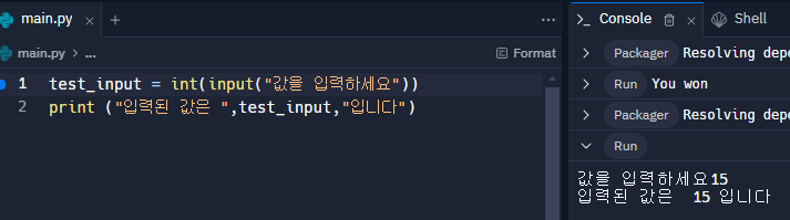 print ("입력된 값은 ",test_input,"입니다")